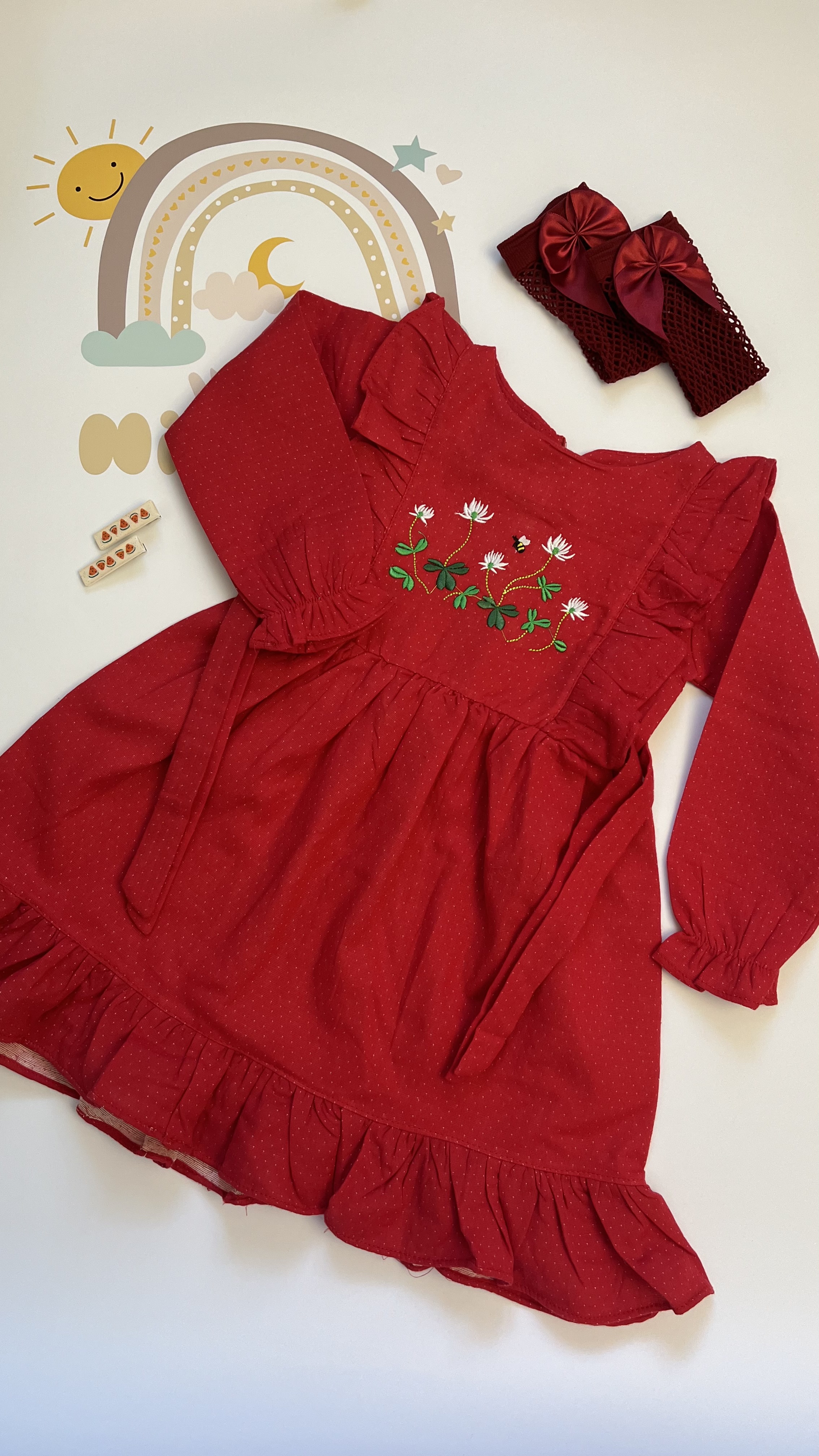 پیراهن نخپنبه واراتی دخترانه طرح باران آستین چیندار
