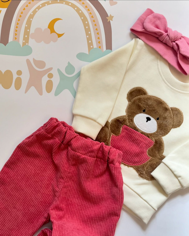 سایز12-18 ماه:قد بلوز:37/عرض سینه:27/قد آستین:28/قد شلوار:42/فاق شلوار:21