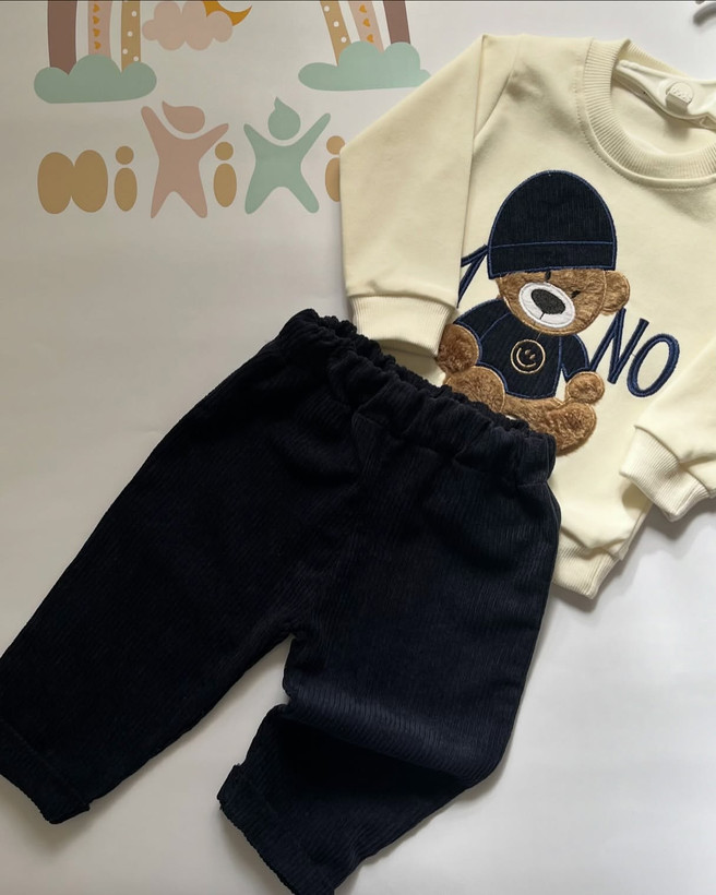 سایز9-12 ماه:قد بلوز:35/عرض سینه:25/قد آستین:27/قد شلوار:40/فاق شلوار:20